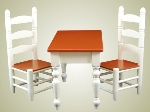 Product Details:- Our beautiful farmhouse kitchen table with 2 matching chairs offers authentically detailed furniture for your 18" dolls like American Girl Dolls